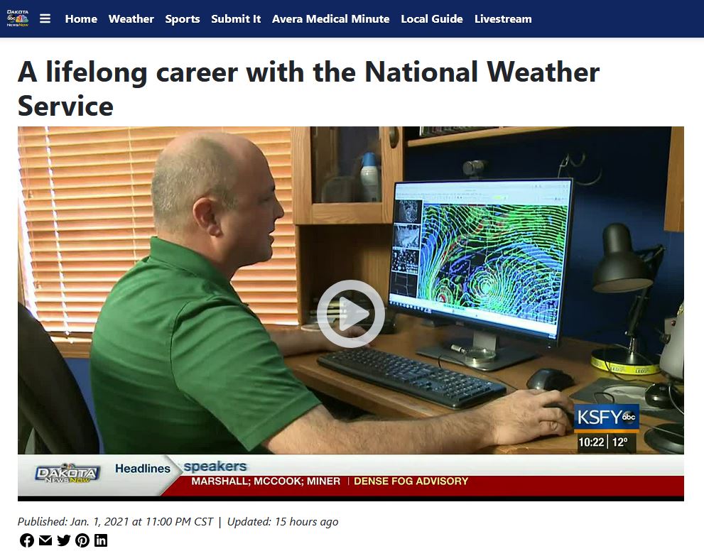 The photojournalist, Dave Hauck, wanted to interview someone that has been serving from the local National Weather Service office for a very long time. I so happen to be currently the second longest employee working at Sioux Falls having transferred from the Garden City, KS office in 1992. This is the first video interview I've ever done for work from my own home due to COVID now limiting the number of people that can be in our office at one time. Since last March, I've been doing 90% of my work remotely from home.