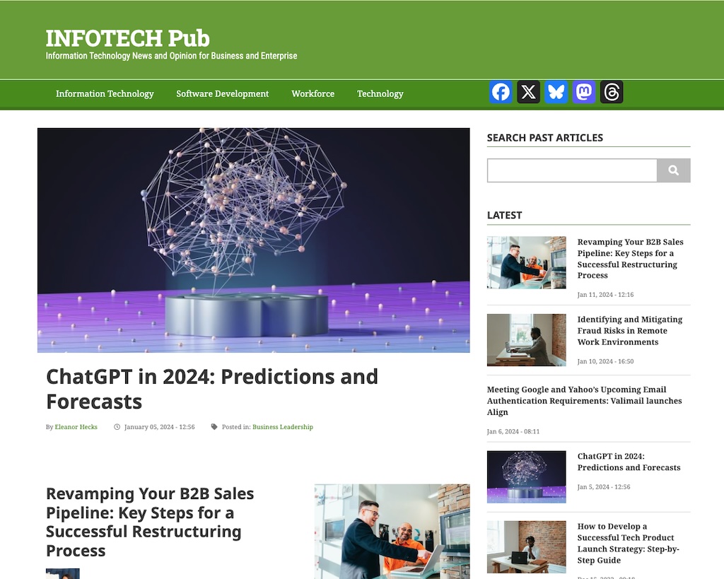 Last year at this time, we quietly introduced a new website called INFOTECH Pub. It was an effort to see if there was enough interest in a website focused on information technology much in the same way we've seen interest in socPub and CMS Report. Well, the short answer is no.